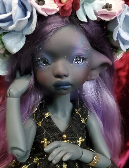 -Wig: Logan Dolls (printed, purple), painted by SplitGillStudio
